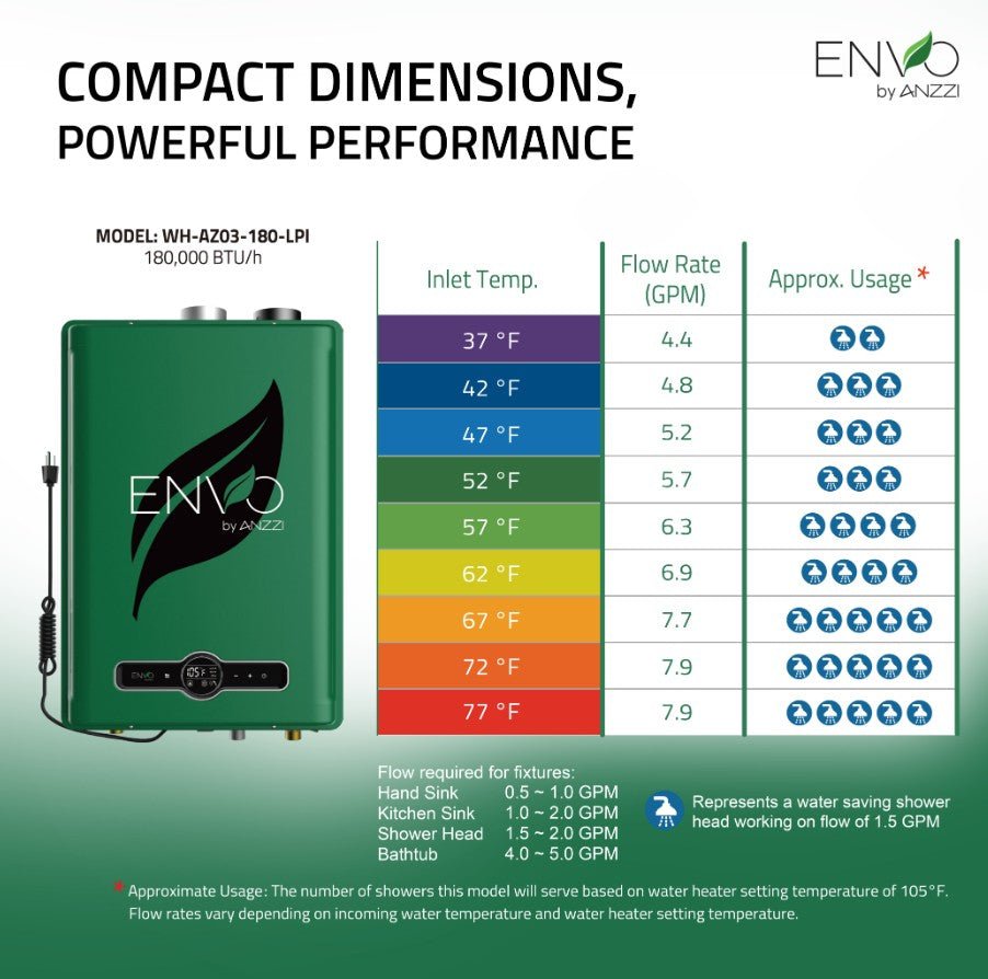 Anzzi Envo Tankless Water Heater Indoor Propane Gas 7.9 GPM 180,000 BTU 120V New