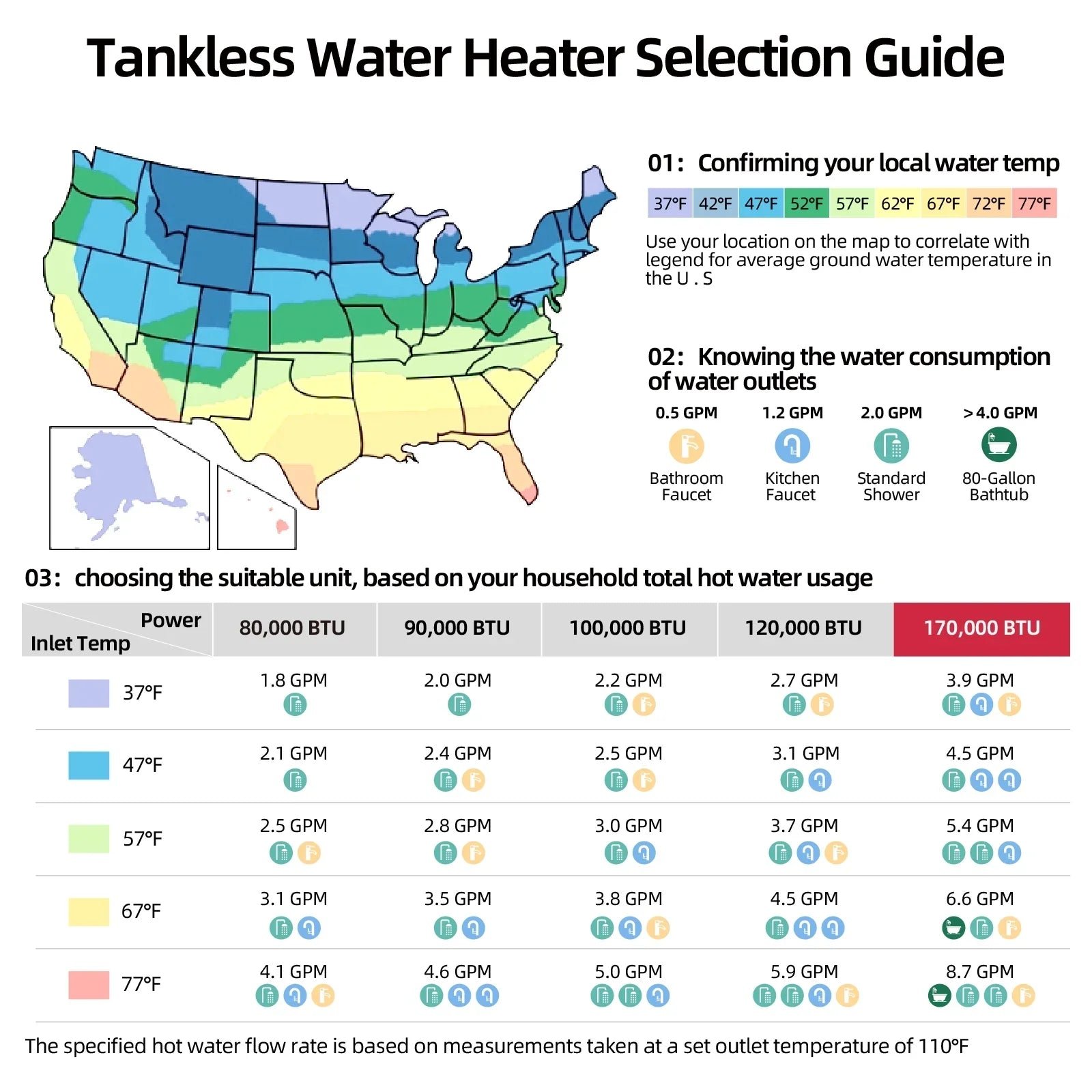 The CF170 is a powerful and efficient tankless water heater that can satisfy the hot water needs of your entire family. With a high 170,000 BTU heating capacity, it can provide up to 8.1 GPM of hot water, making it suitable for 3-4 outlet points. Featuring a compact design for easy installation, this propane-powered indoor unit boasts a high energy conversion rate, effectively reducing energy loss. The built-in forced exhaust fan ensures stable combustion and eliminates the influence of external wind.